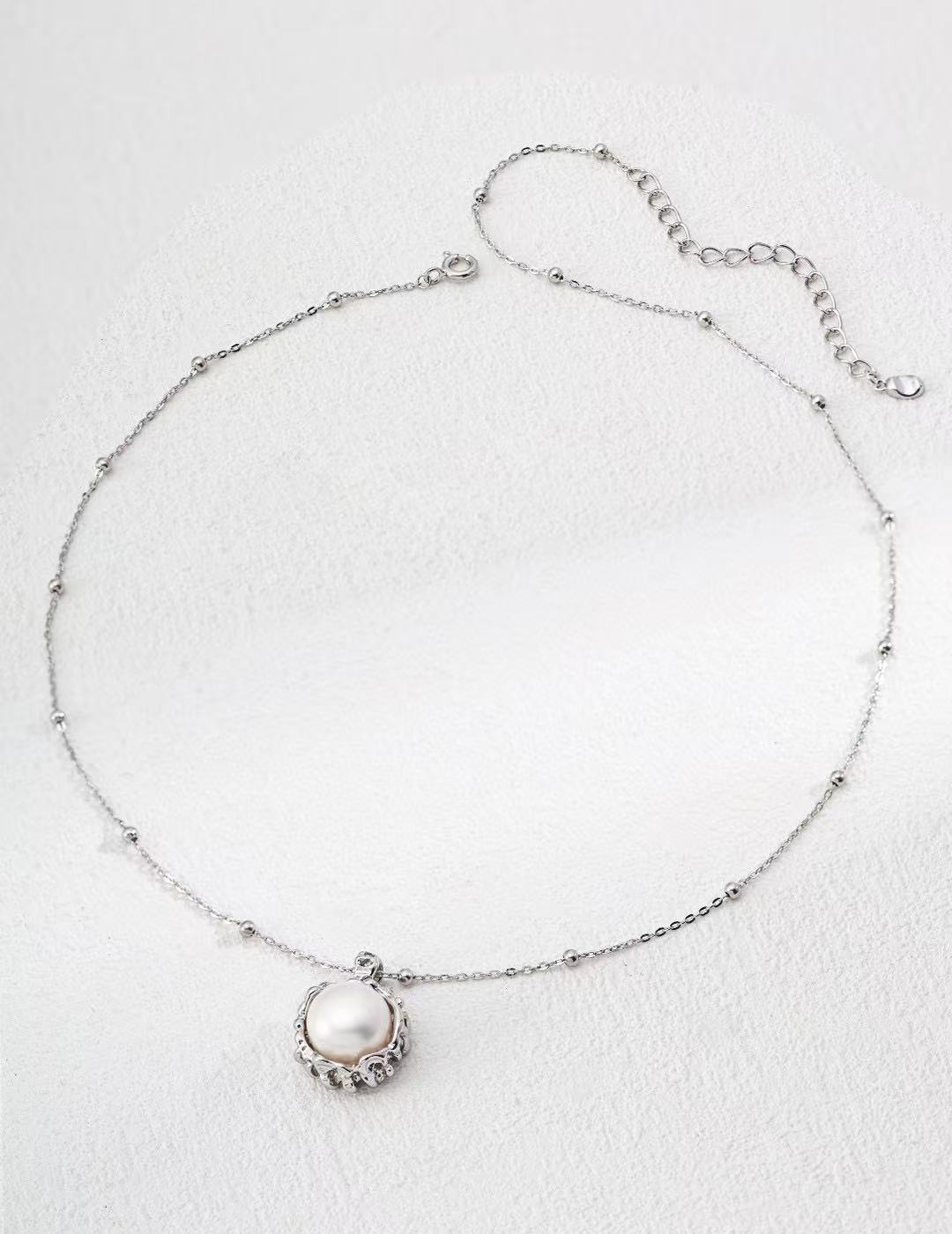 Material: 925 Silver/Natural Pearl Size: Chain length about 45cm + 6cm extension chain Pendant height about 2cm