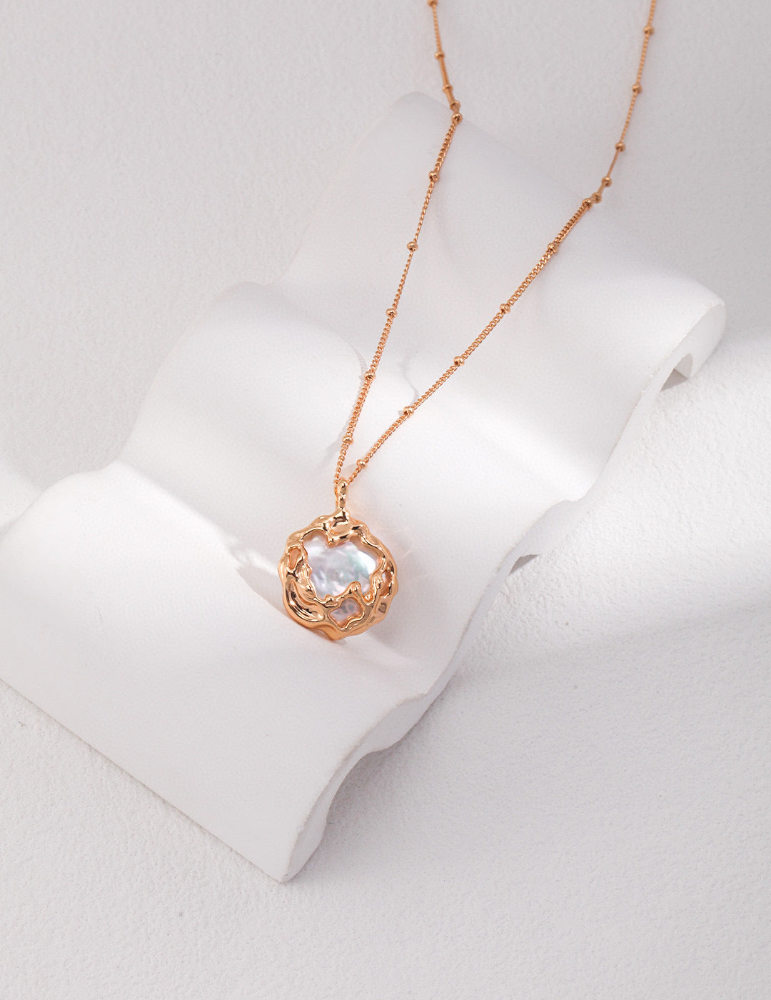 “Featuring natural round baroque-shaped pearls, this elegant jewelry set includes matching earrings and a necklace. Each pearl is gracefully wrapped in gold-toned S925 sterling silver, with delicate zircon accents adding a subtle sparkle. The combination of luminous pearls and shimmering stones radiates timeless elegance and quiet confidence.”