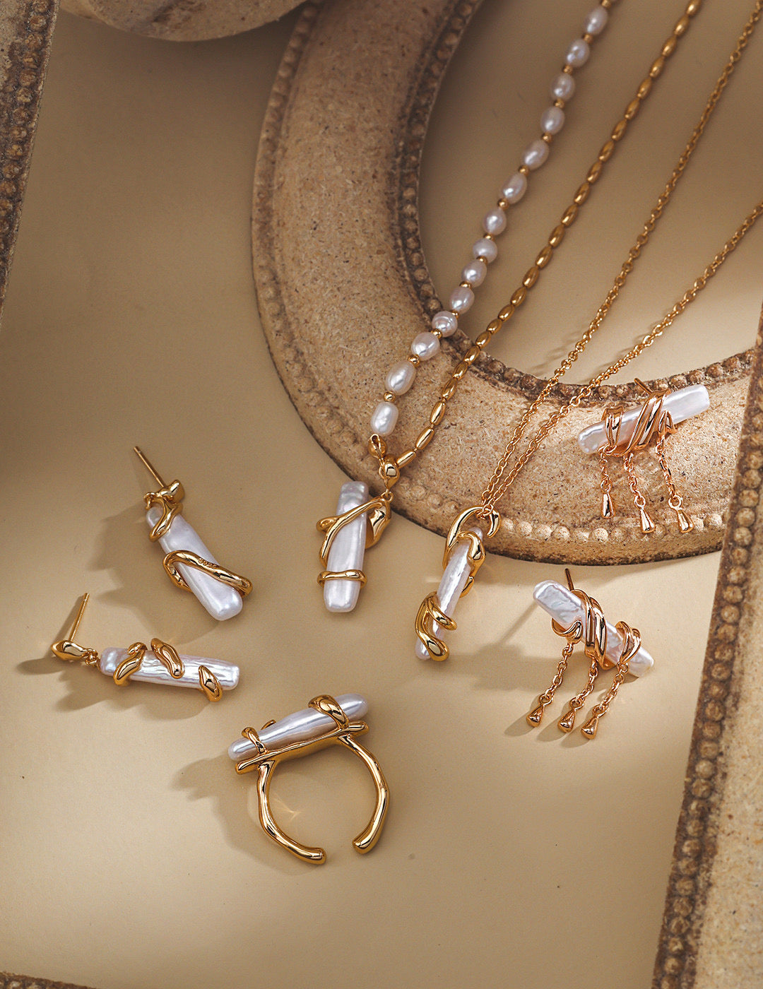 Their asymmetrical lines and gentle shimmer bring a modern twist to timeless sophistication — perfect for elevating your daily look or adding a touch of grace to special occasions.