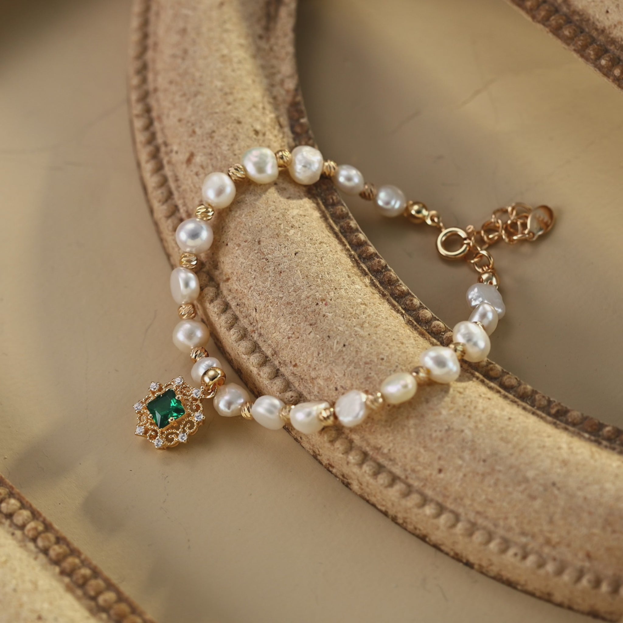 Soft freshwater pearls trace the design, blending gracefully with the detailed metalwork for a look that’s timeless, elegant, and effortlessly elevated.