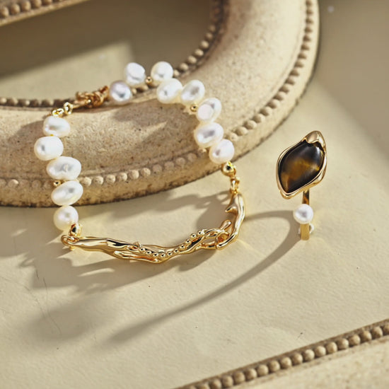 • S925 Sterling Silver / Natural Pearl / Tiger’s Eye