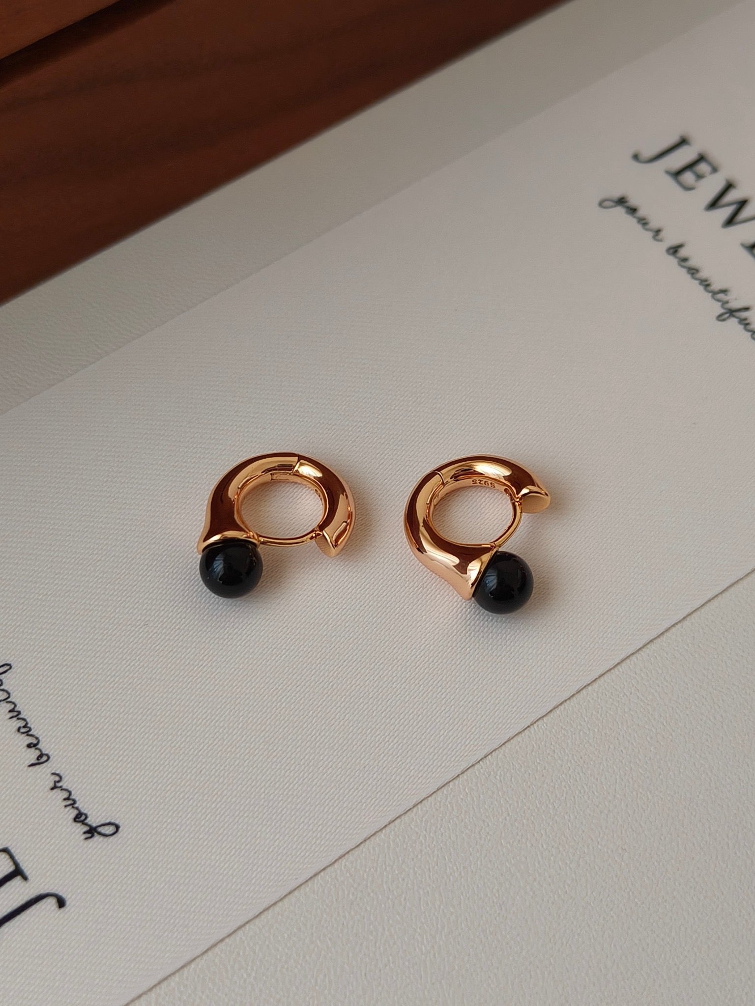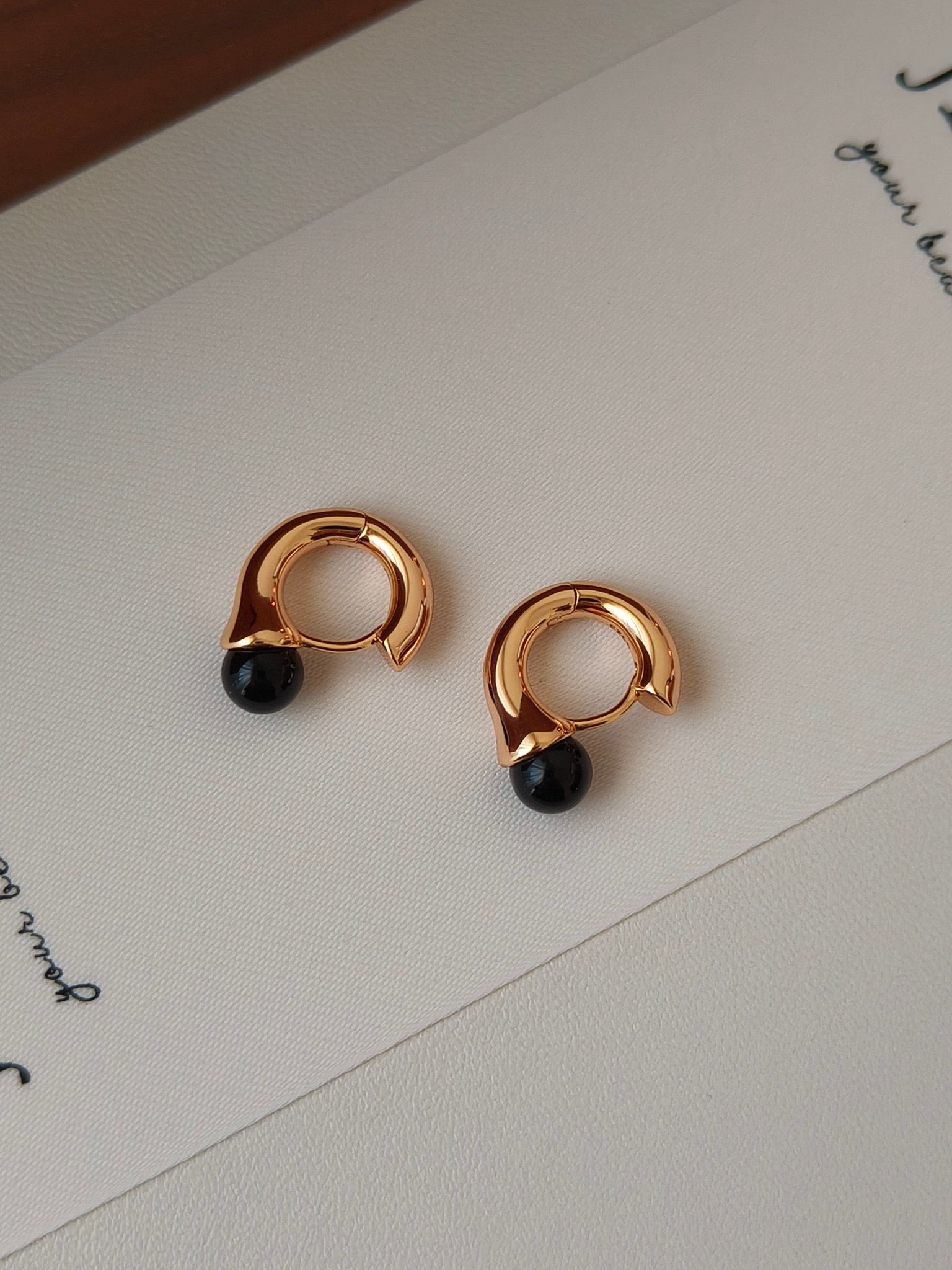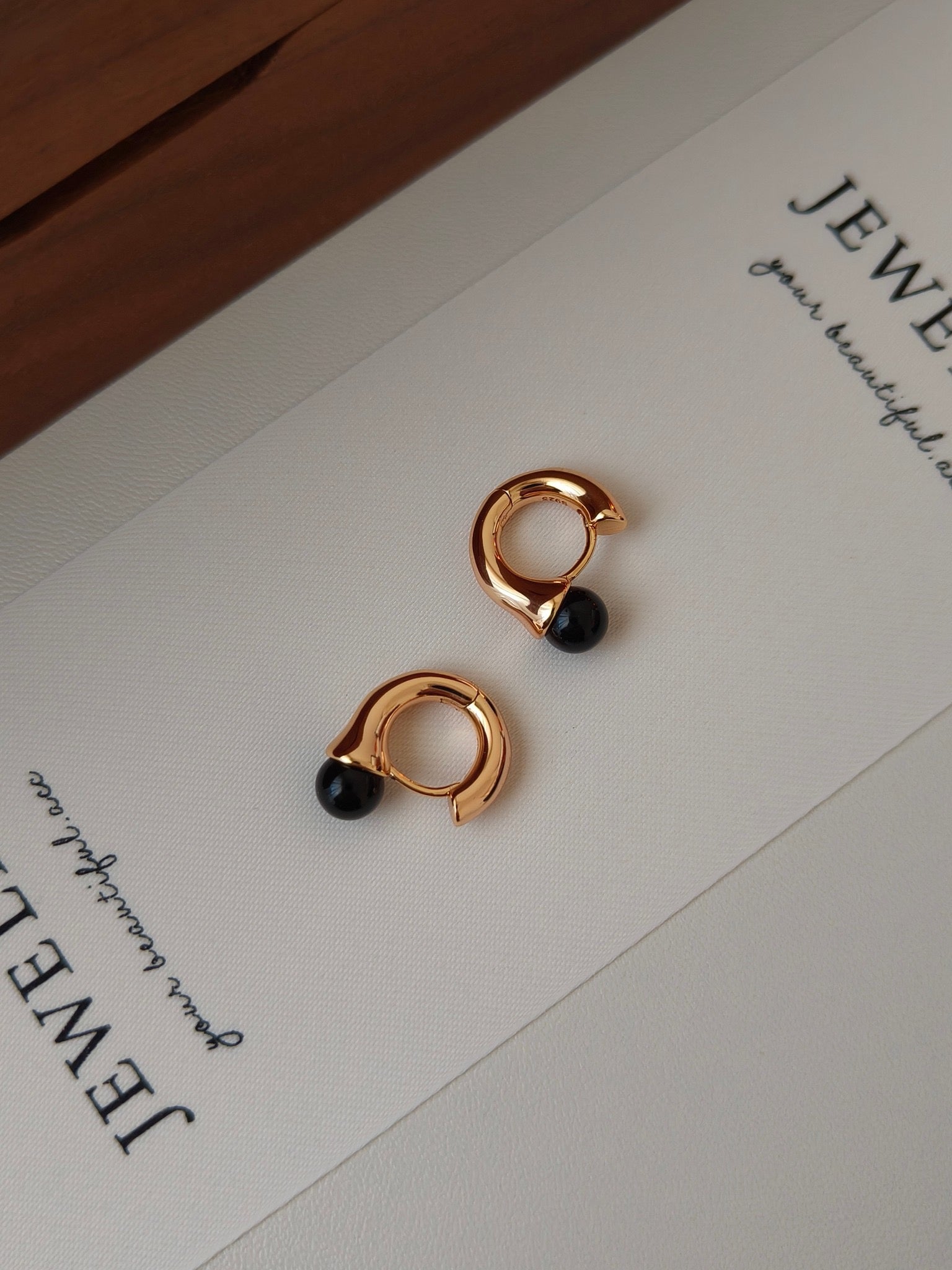 An elegant duo crafted in full S925 sterling silver with 18k gold plating, paired with a glossy black agate bead for a sleek, minimalist finish.