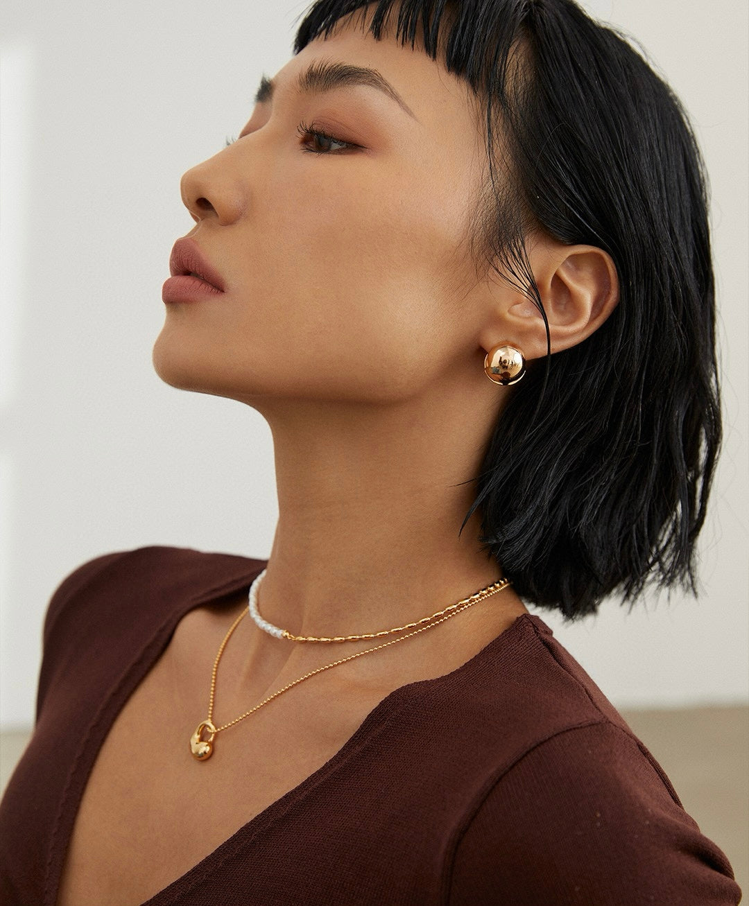 Crafted in S925 sterling silver with natural rice pearls and vintage-gold plating, it pairs timeless femininity with modern design.