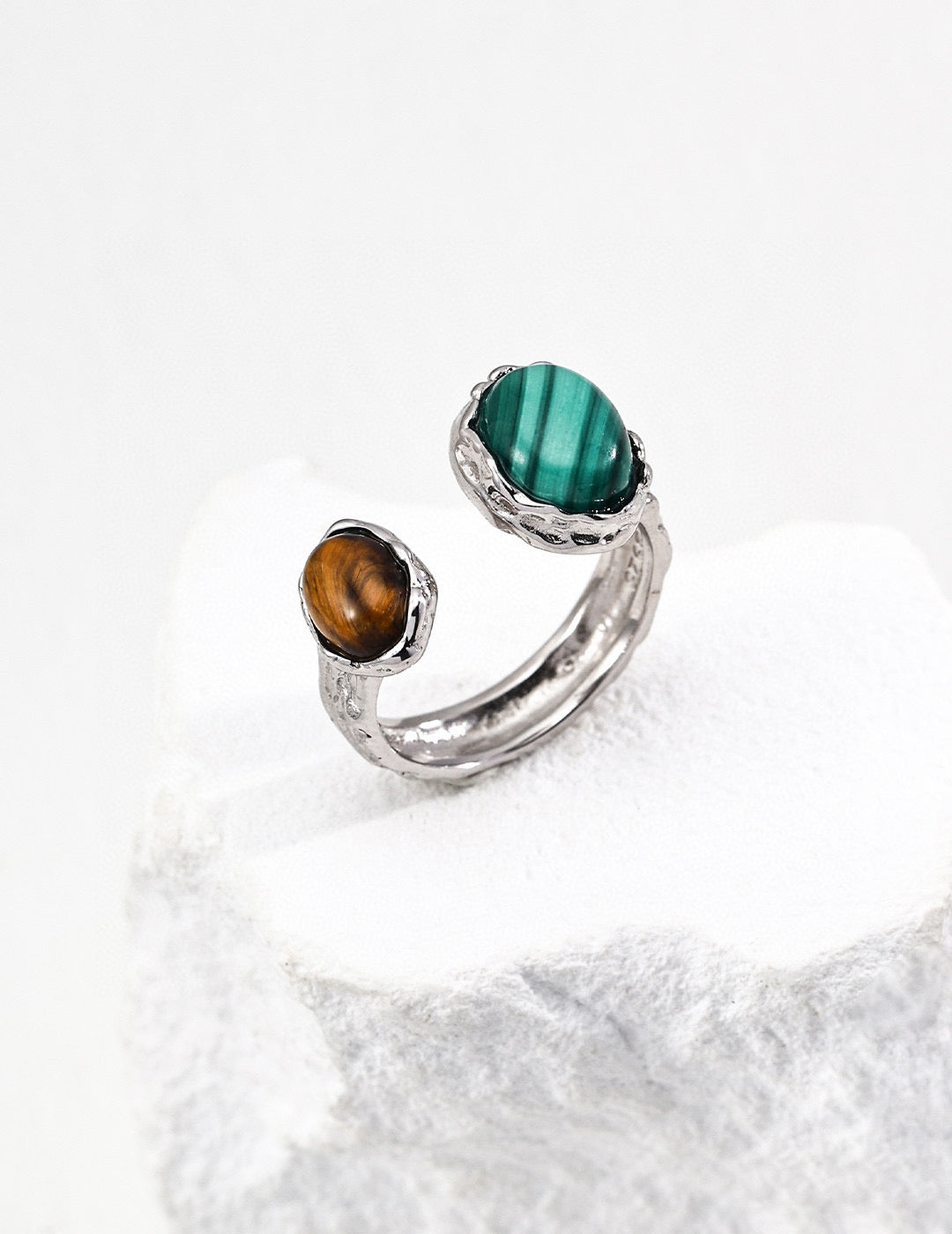 “A striking pair of vintage-inspired earrings crafted from S925 sterling silver, featuring intricately carved textures and a bold contrast of natural gemstones. The top stud is set with fiery red agate, while the drop features a rich green malachite. Together, the vivid colors create a sophisticated harmony—vintage yet fashion-forward, timeless yet full of personality.”