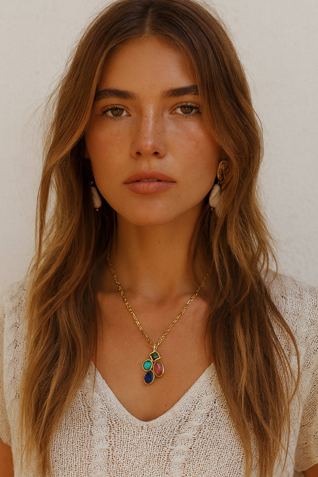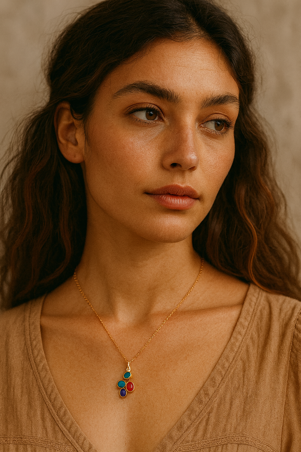 This exquisite necklace combines timeless craftsmanship with vibrant natural stones.